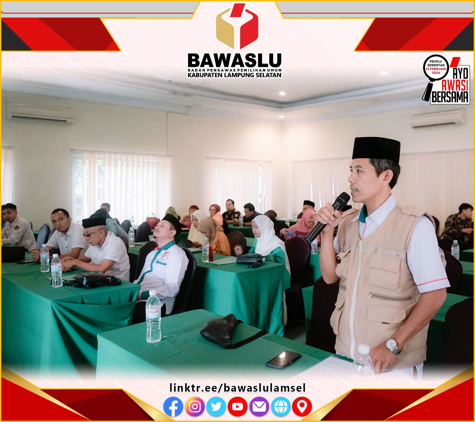 Hendra Fauzi Selaku Ketua Bawaslu Lampung Selatan mengatakan, dalam penyelenggaraan Pemilu 2024 pentingnya partisipasi dan inisiatif masyarakat dalam pengawasan penyelenggaraan pemilu untuk mewujudkan pemilu yang bersih, transparan, dan berintegritas dari sisi penyelenggara dan penyelenggaraannya.