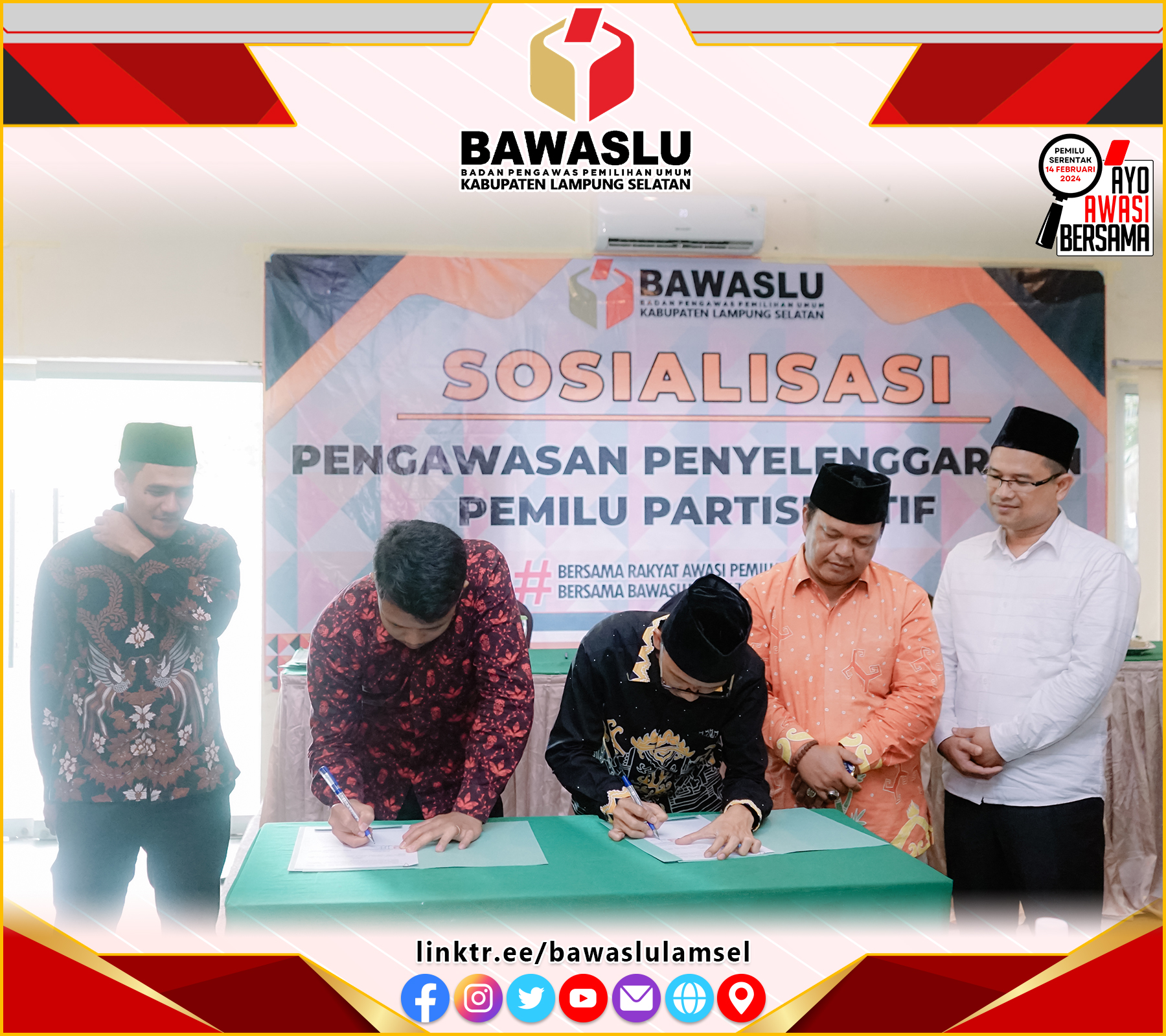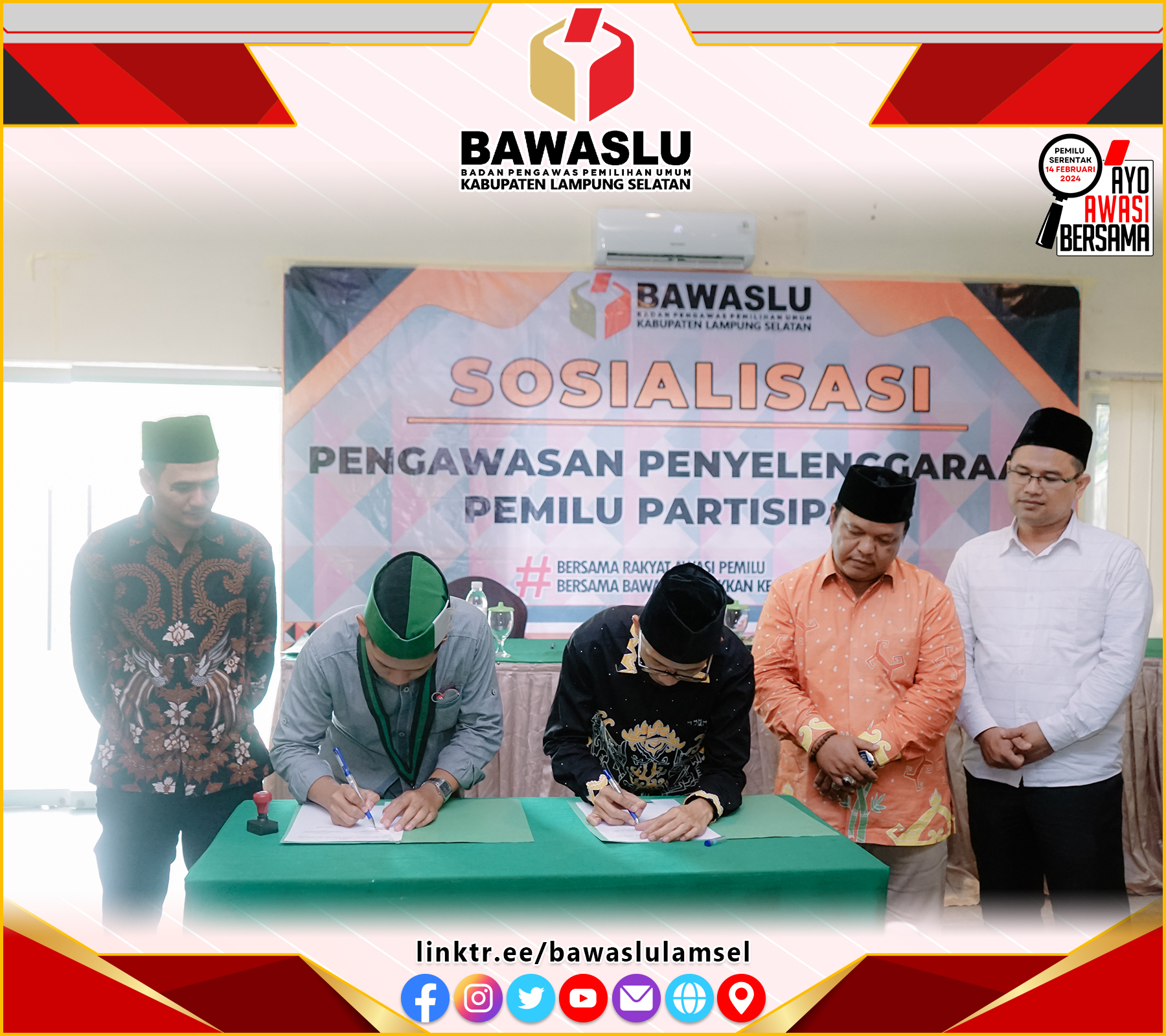 BAWASLU KABUPATEN LAMPUNG SELATAN MELAKUKAN PERJANJIAN KERJASAMA TENTANG PENGAWASAN PARTISIPATIF PEMILU DENGAN 25 ORGANISASI MAHASISWA, MASYARAKAT, DAN KEPEMUDAAN DI KABUPATEN LAMPUNG SELATAN