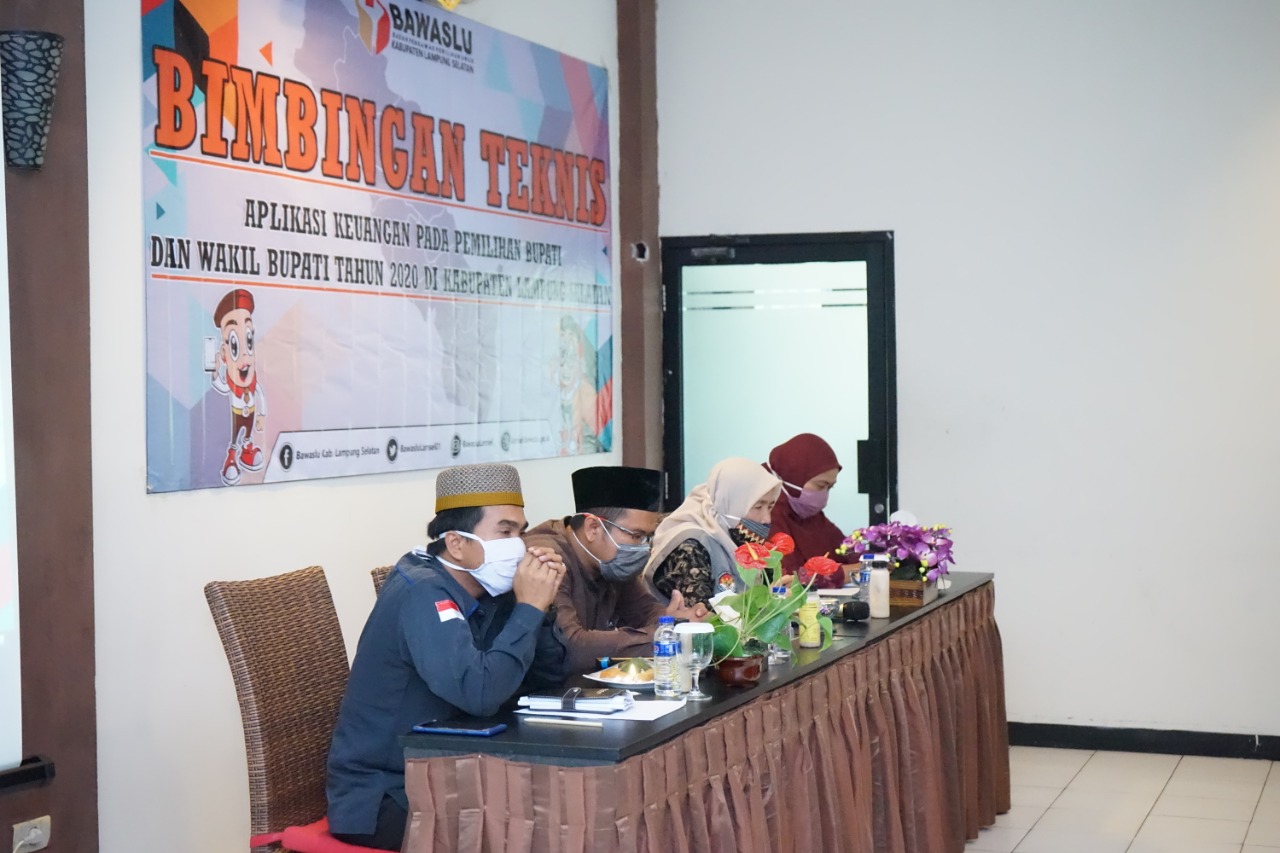 Badan Pengawasan Pemilihan Umum (Bawaslu) Kabupaten Lampung Selatan (Lamsel) melakukan Bimbingan Teknis (Bimtek) terkait Aplikasi Keuangan Pilkada 2020 pada Kamis, 6/08 di Hotel Syariah Bandara Natar.