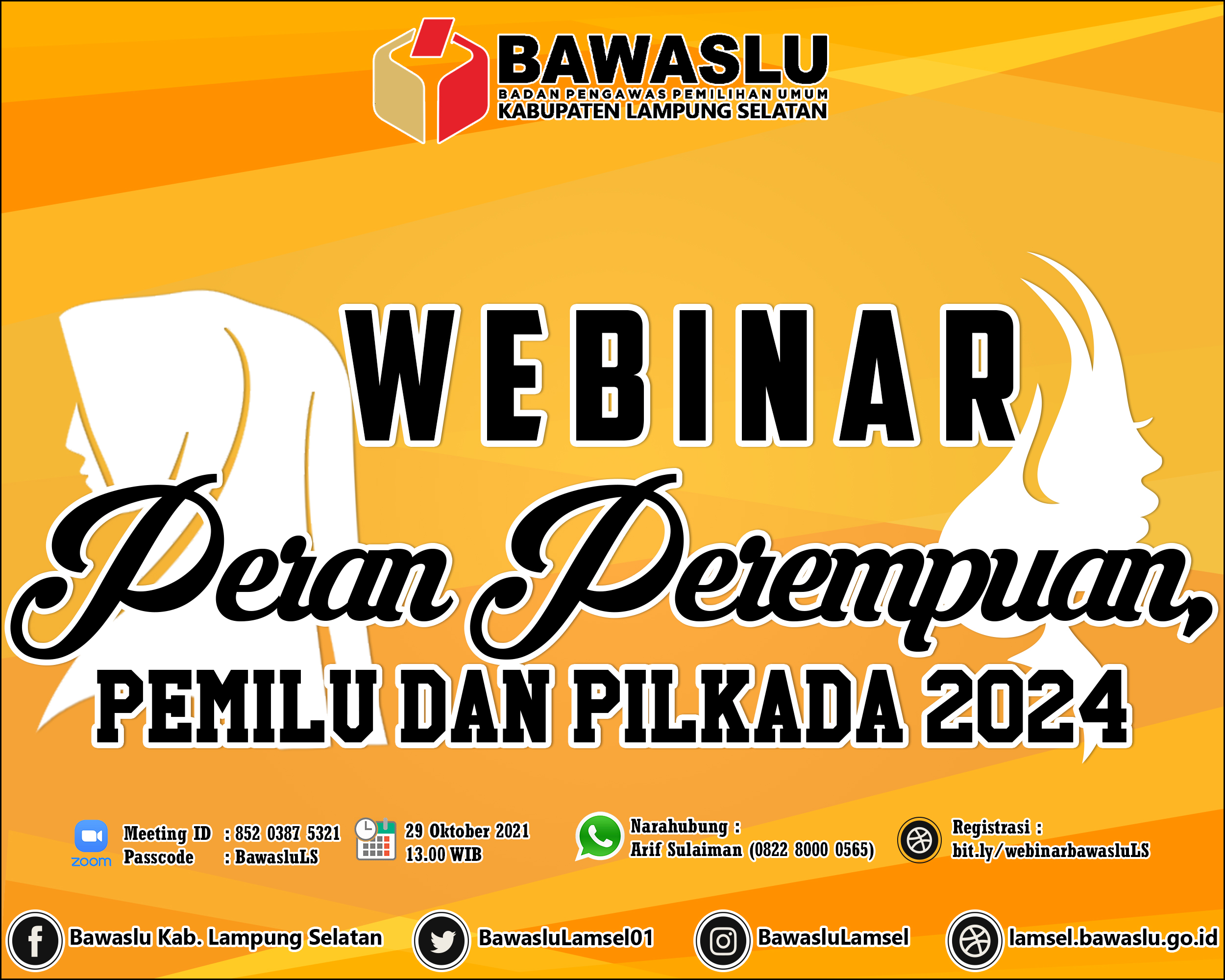 Bawaslu Kabupaten Lampung Selatan merespon fenomena politik perempuan khususnya yang ada di Lampung Selatan. Berkaitan hal tersebut Bawaslu menyediakan Webinar Peran Perempuan, Pemilu dan Pilkada 2024.