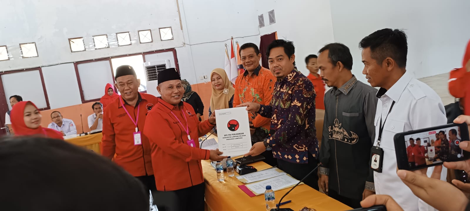 Pengajuan berkas bakal calon Anggota DPRD Kabupaten Lampung Selatan Partai Demokrasi Indonesia Perjuangan (PDIP) dipimpin langsung oleh Nanang Ermanto selaku Ketua DPC PDIP Kabupaten Lampung Selatan. Masa PDIP yang datang dengan berjalan dengan pakaian adat tiba di Aula KPU Lampung Selatan sekitar pukul 09.21 WIB.