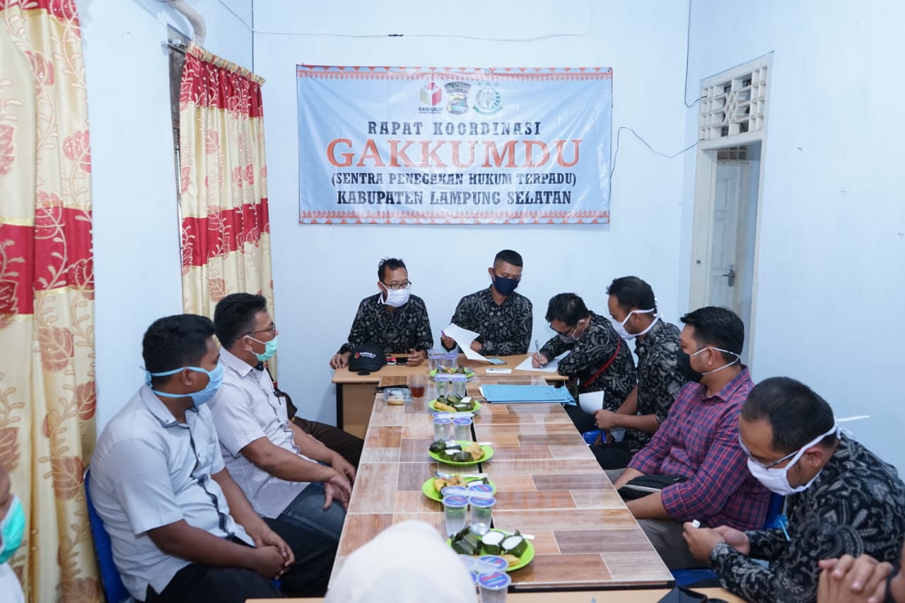 Dalam kegiatan ini diawali dengan ramah tamah Bersama jajaran Gakkumdu Lamsel dengan menerapkan SOP protokol Covid 19. Rakor dan ramah tamah yang dipimpin langsung oleh Ketua Bawaslu Lampung Selatan Hendra Fauzi. Dalam rapat tersebut beliau menyampaikan dengan adanya wabah virus covid 19 ini semua tahapan pemilu harus di berhentikan sementara sesuai arahan Bawaslu RI.