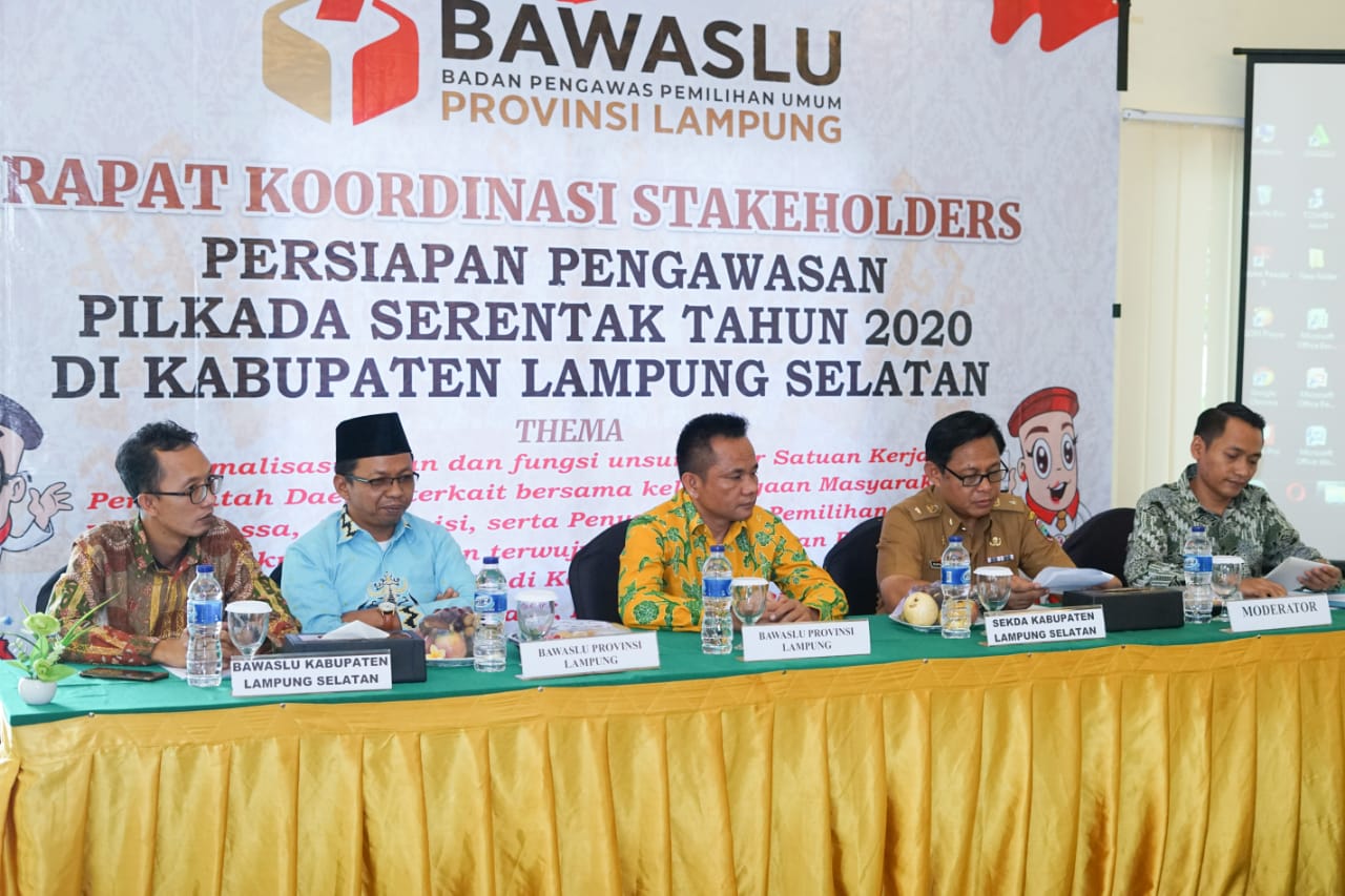 Dalam melakukan persiapan Pilkada Tahun 2020 Bawaslu Provinsi Lampung beserta jajaran Bawaslu Kabupaten Lampung Selatan melakukan Rapat Stakeholders Pesiapan Pengawasan Pilkada Serentak Tahun 2020
