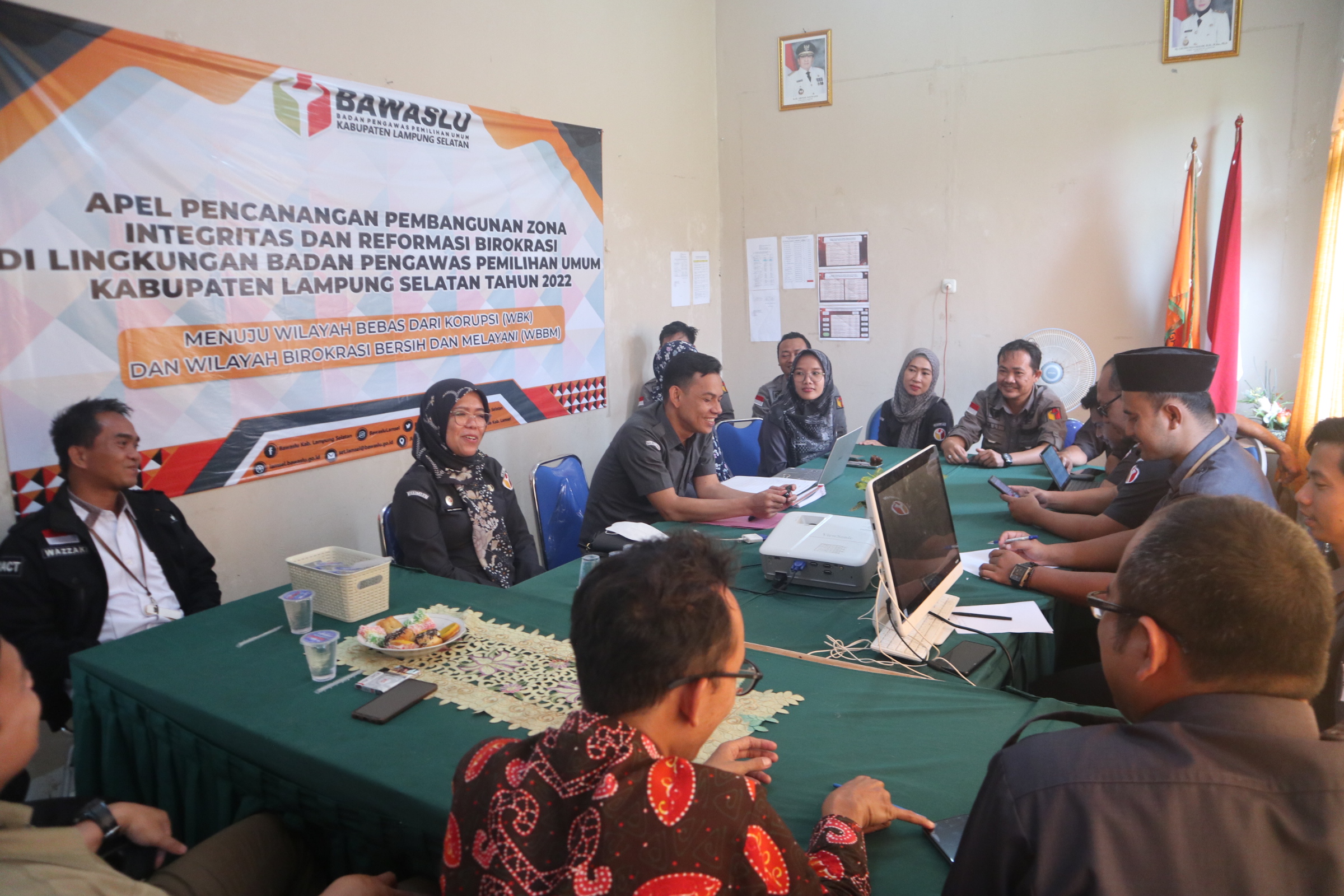 Dalam kesempatan ini hadir Ketua Hendra Fauzi dan Anggota Bawaslu Kabupaten Lampung Selatan Wazzaki, Fakhrur Rozi, Ahmad Sahlan dan Khaoirul Anam. Hadir juga Koordinator Sekretariat, BPP, dan seluruh staf jajaran Bawaslu Kabupaten Lampung Selatan.