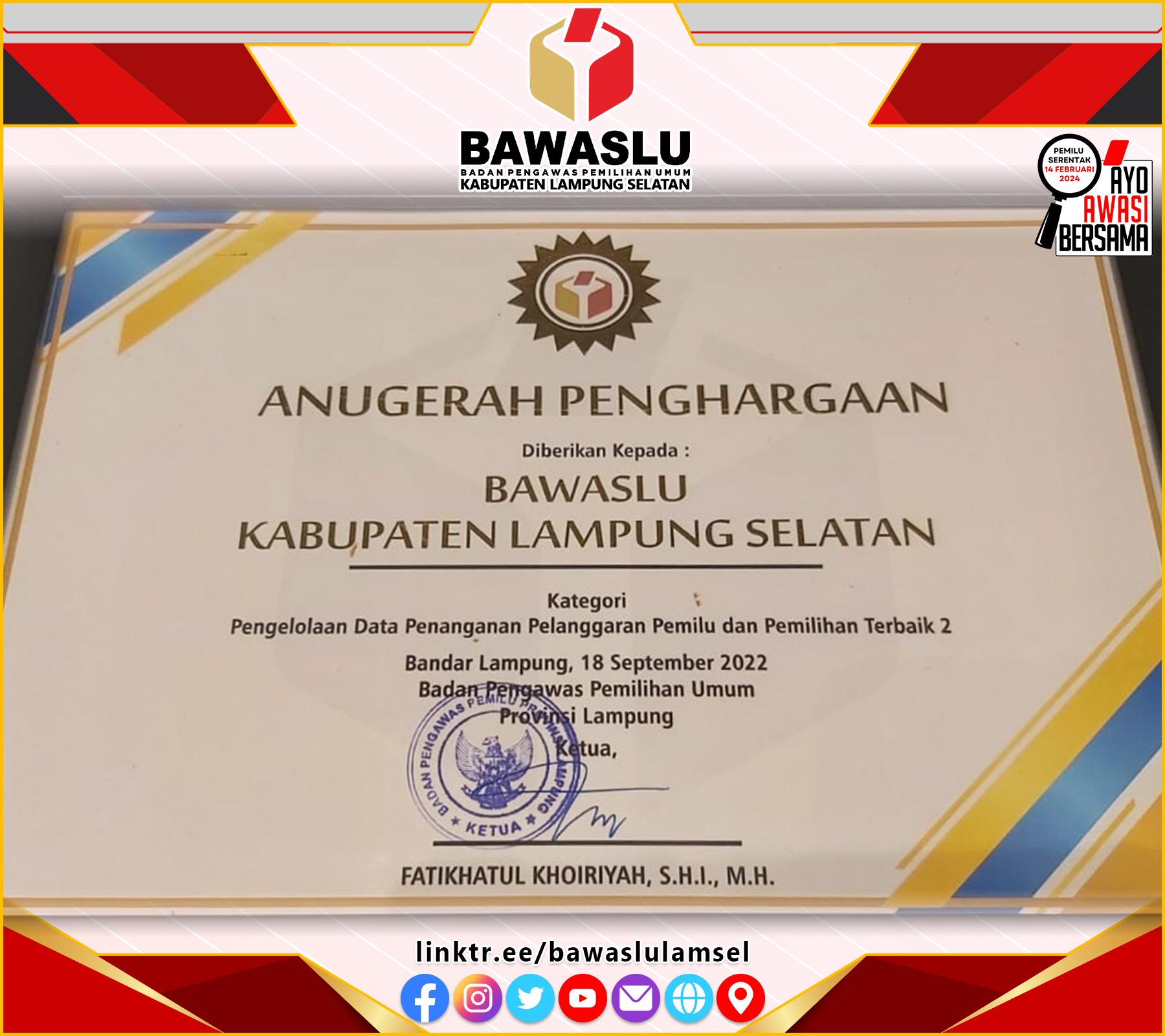 Acara yang dibuka oleh Anggota Bawaslu RI Rahmat Bagja dan dihadiri oleh Bupati Way Kanan Raden Adipati Surya, Ketua dan Anggota Provinsi Lampung serta seluruh Ketua Bawaslu Kabupaten Se-Provinsi Lampung.