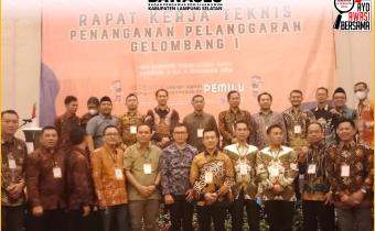Ketua dan Anggota Bawaslu Kabupaten Lampung Selatan Hendra Fauzi dan Khoirul Anam hadiri Rapat Kerja Teknis Penanganan Pelanggaran bertempat di Kota Bandung, Provinsi Jawa Barat (6/11)