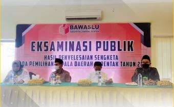 Badan Pengawasan Pemilihan Umum (Bawaslu) Kabupaten Lampung Selatan (Lamsel) menyampaikan eksaminasi publik hasil penyelesaian sengketa pada pilkada serentak 2020 di Meeting Room Negeri Baru Resert Kalianda Lamsel,