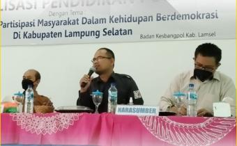 Bawaslu Lamsel, Kalianda,- Anggota Badan Pengawasan Pemilihan Umum (Bawaslu) Lampung Selatan (Lamsel) Fakhrur Rozi memberikan Materi Pada giat hari kedua sosialisasi peningkatan partisipasi masyarakat dalam pen