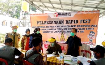 Badan Pengawas Pemilihan Umum (Bawaslu) Lampung Selatan (Lamsel) Bersama Dinas Kesehatan Kabupaten Lampung Selatan melaksanakan Rapid Test (RT) personil Bawaslu beserta jaj